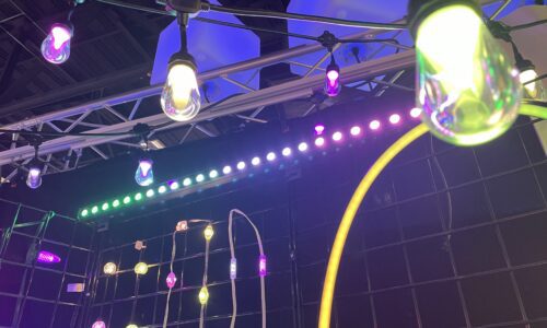 At 28 lumens on warm white, the 35mm RGBW+ Dot is one of our brightest pixels. 3-LEDs & a magnified lens allow us to point the light string down, and light up the architecture, or mount high above the viewing area.